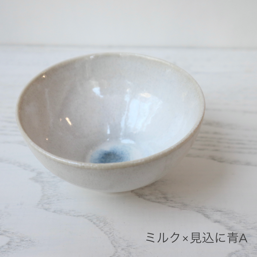 広瀬佳子 丸ゆのみM(氷灰・ミルク・ミルク×見込に青・ミルク×刷毛グレー)