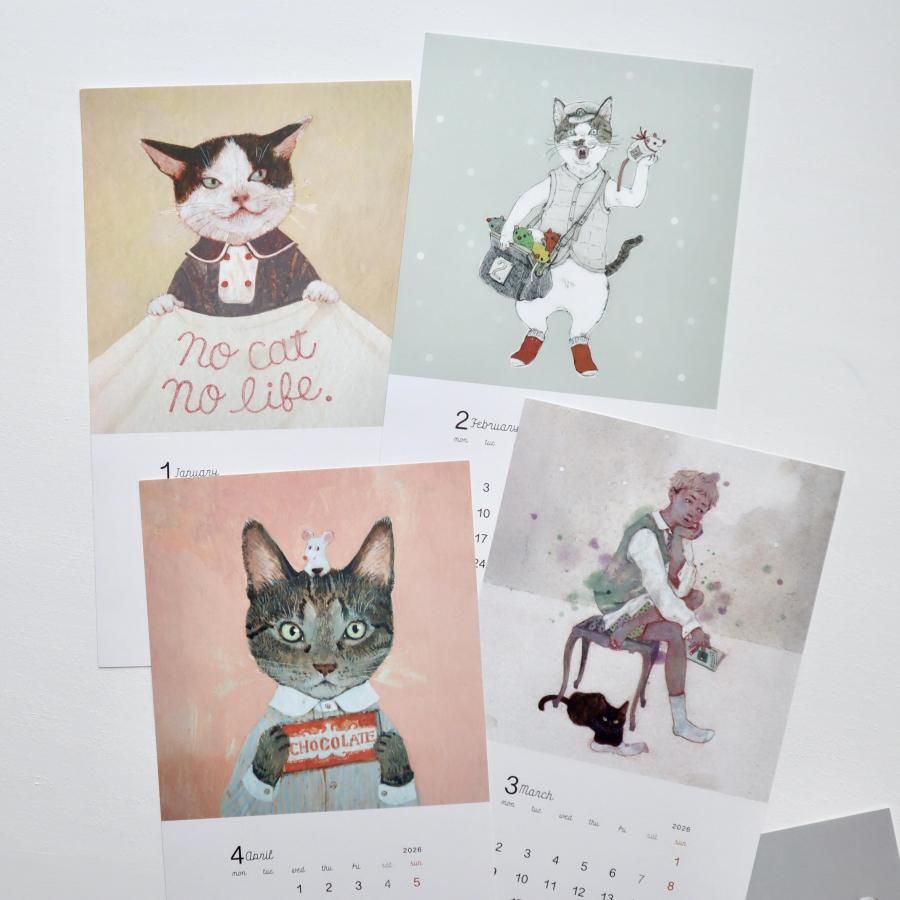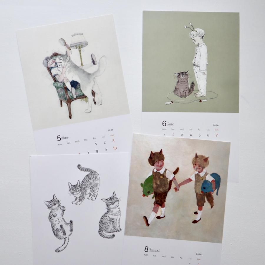 ちょっぴりシュールな少年少女、猫や犬たちの絵を12カ月お楽しみください。