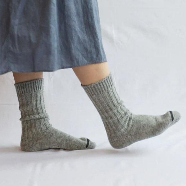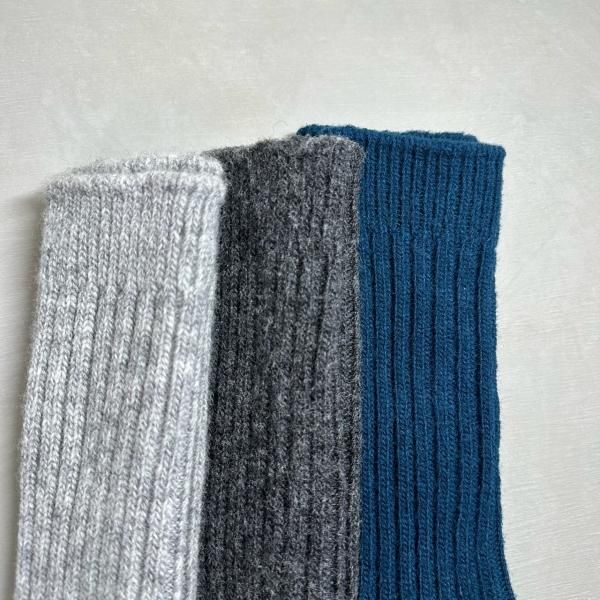 柔らかく、かさ高いウールを使用した軽くてボリュームのあるリブソックス。