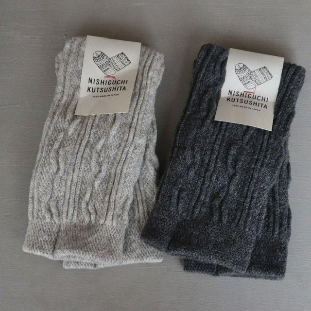 NISHIGUCHI KUTSUSHITA 西口靴下 ウール縄柄ハンドウォーマー