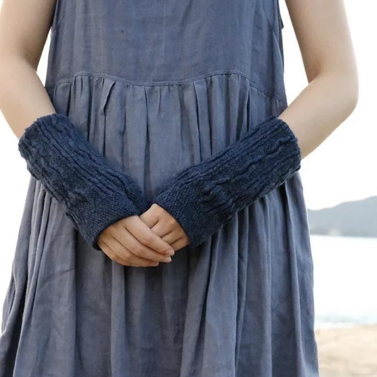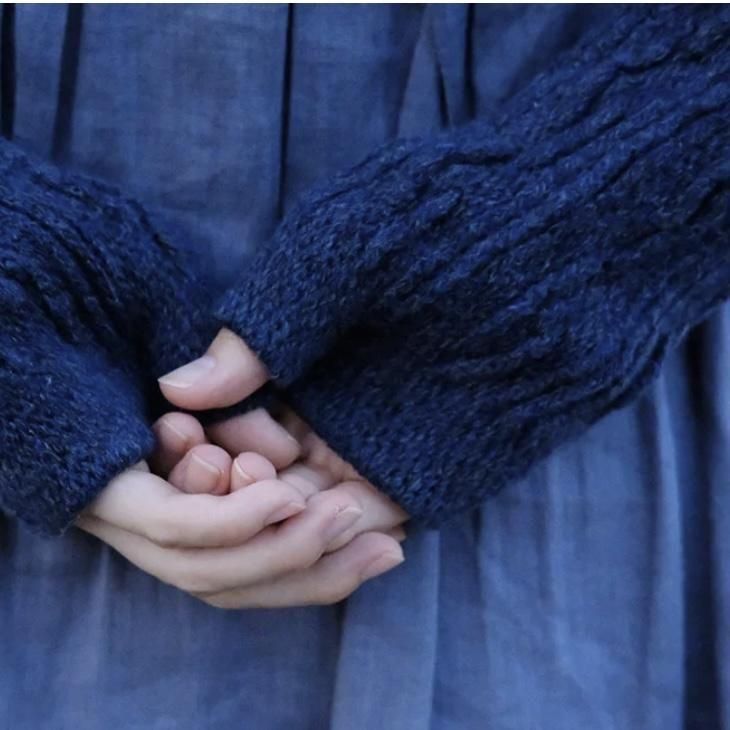 柔らかさが特徴の「紡毛ウール」としっかりと撚り合わせている「梳毛のウール」をミックスしているので強度もしっかりとあるハンドウォーマー