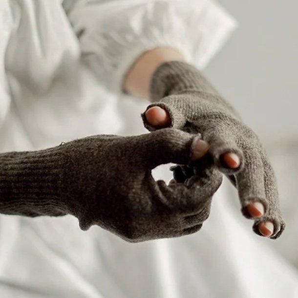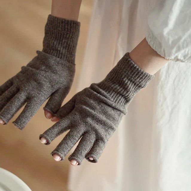 カシミヤと同じくらい細やかなウールを使用したしっとりと温かい指先フリーの手袋です。
