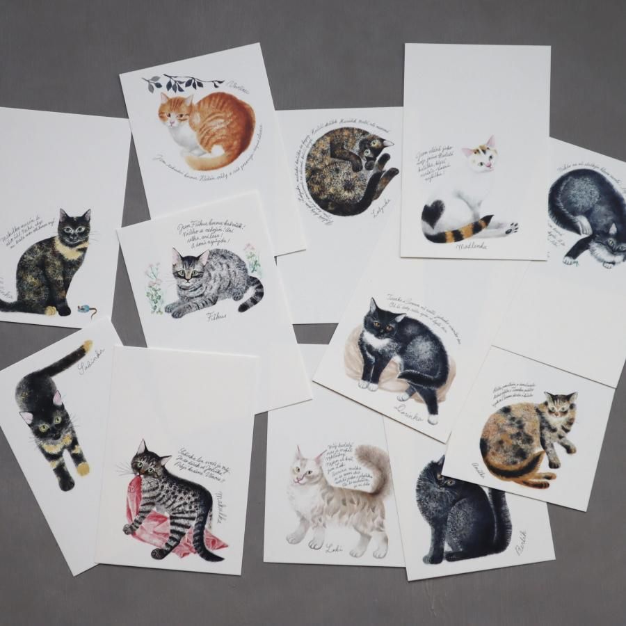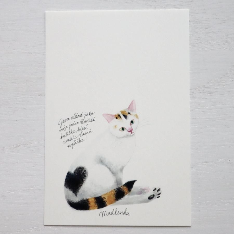 「チェコの猫の12ヶ月カレンダー2025」と同じ絵柄を使ったポストカードにしました。