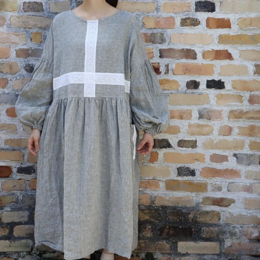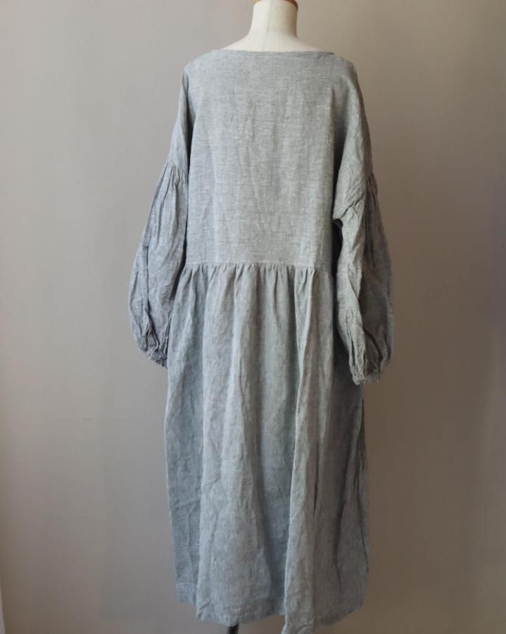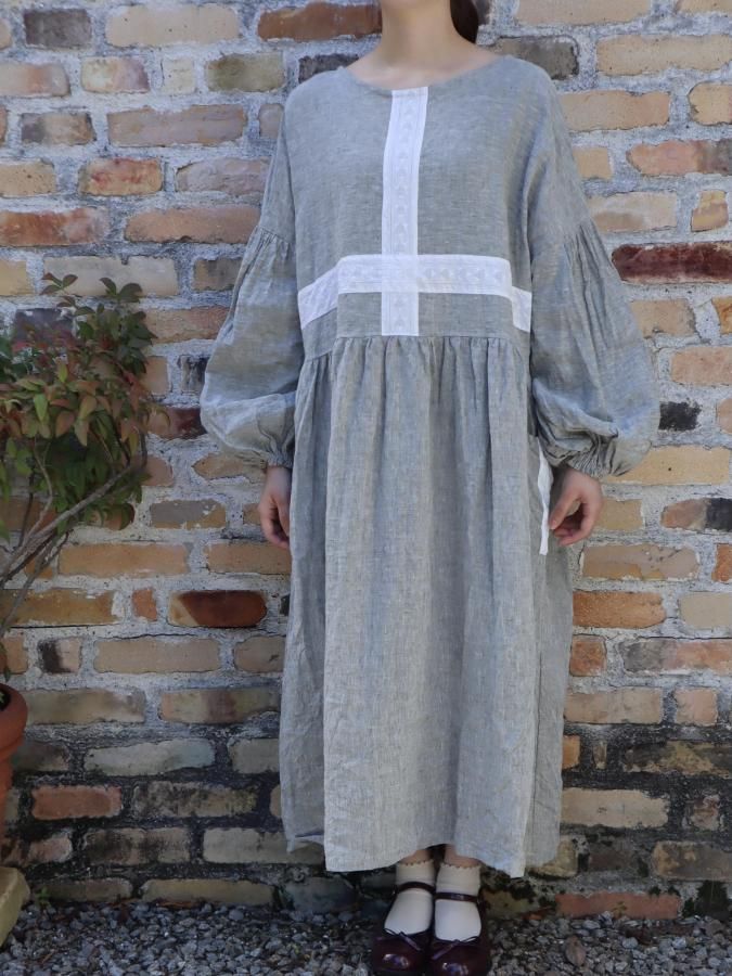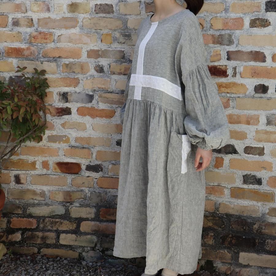 クロスラインにデザインしたリネンワンピースです。