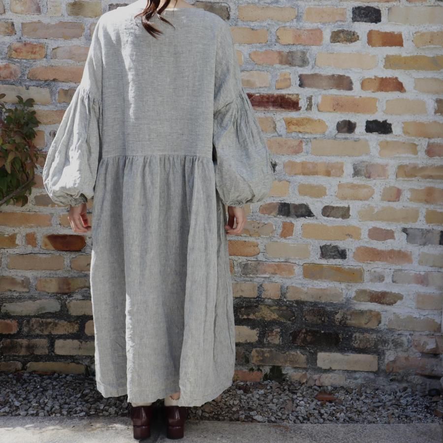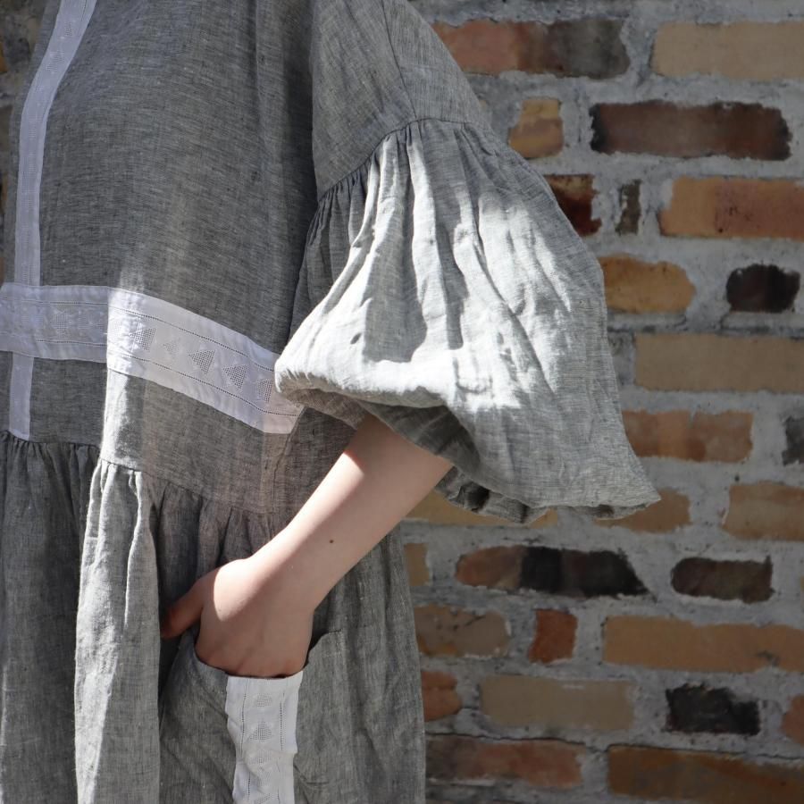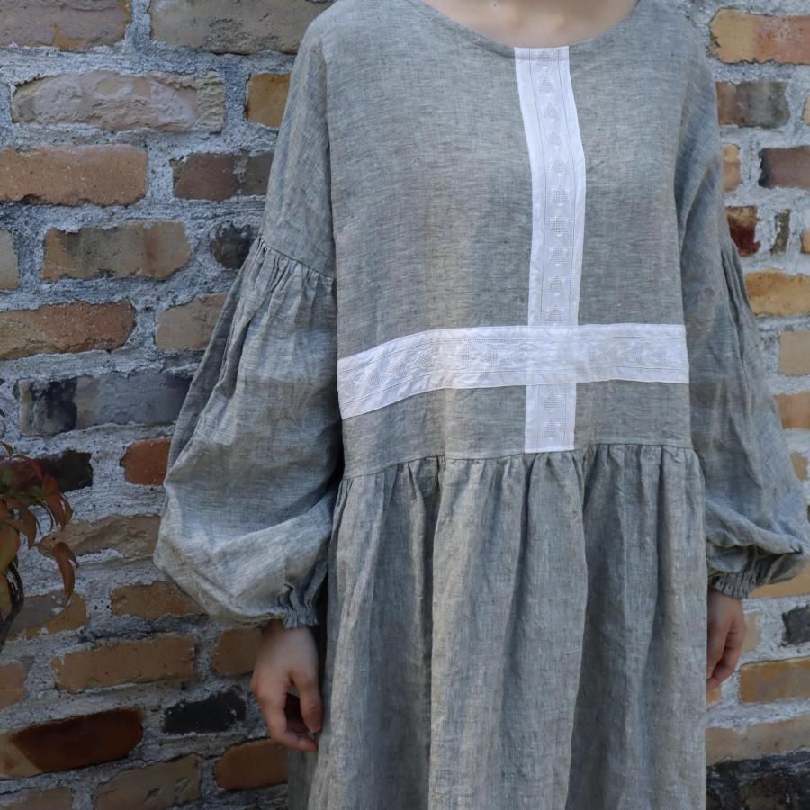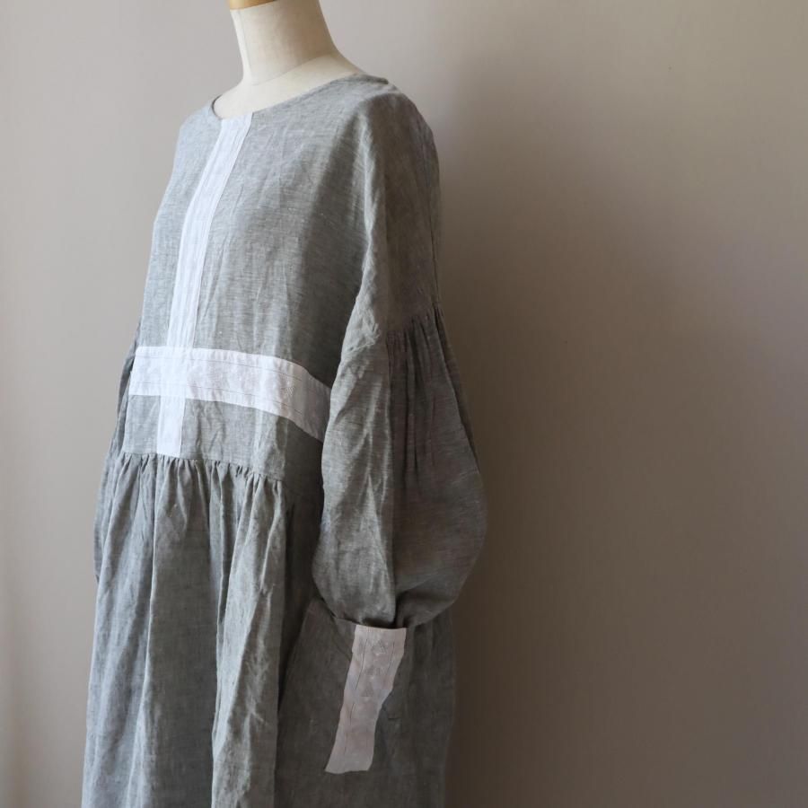 クロスラインにデザインしたリネンワンピースです。